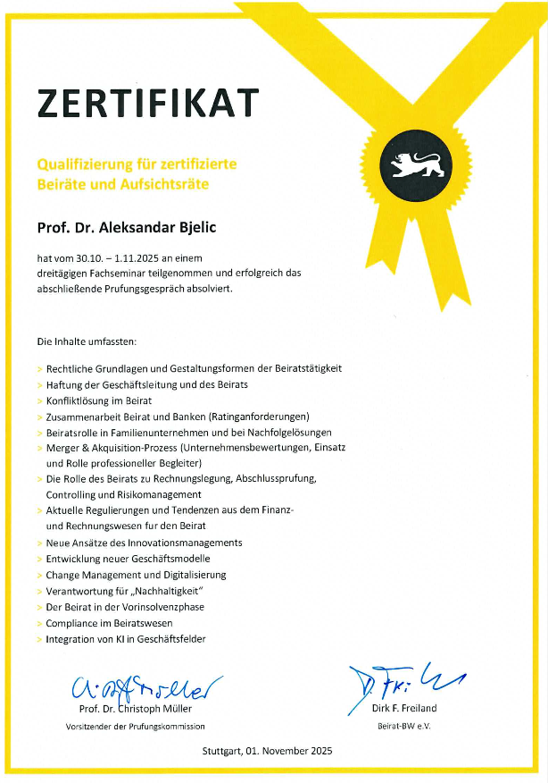 Qualifizierung für zertifizierte Beiräte und Aufsichtsräte